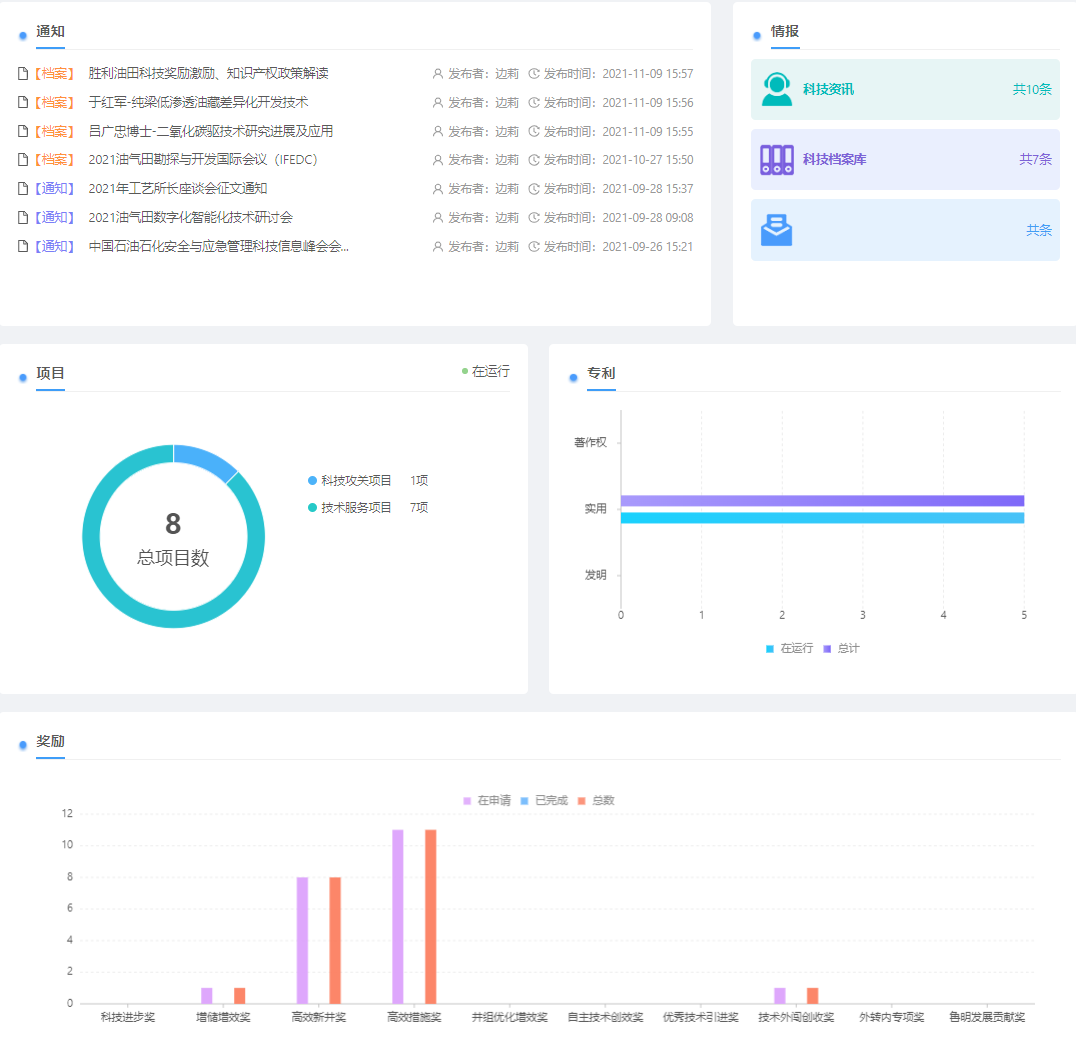 鲁明公司科技创新管理平台以“推进技术创新、驱动价值创造”为目标,统筹情报、项目、人才、专利和奖励工作,构建“渠道畅通、管理规范、激励有效、支撑发展”的现代油田企业科技和技术创新管理体系,为公司可持续、高质量发展提供坚实保障。