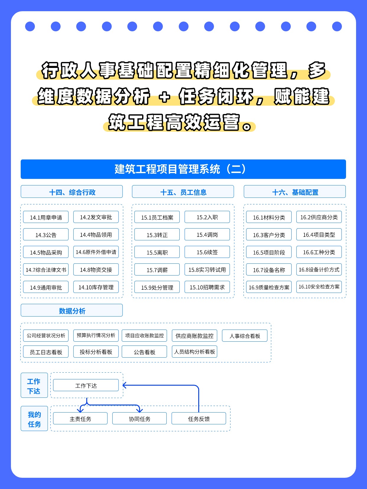 💯答:协同效率提升明显。以前各部门都是线下传递资料,信息滞后。现在通过系统的工作下达、任务分配功能,各部门能 实时接收任务,协同处理,像物资采购和施工进度的协同,以前要几天沟通,现在线上就能快速解决,项目推进更顺畅了。