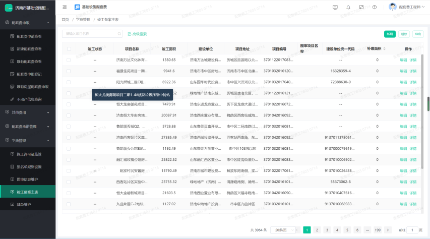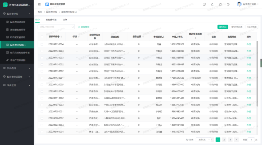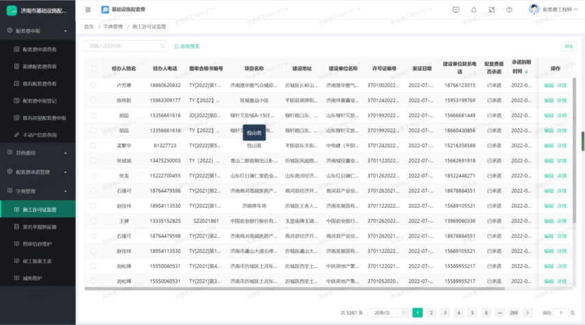 4、实现对配套费的办理、核验、审批、核算、施工许可承诺制监管、竣工备案验收监管、在线缴费等功能。