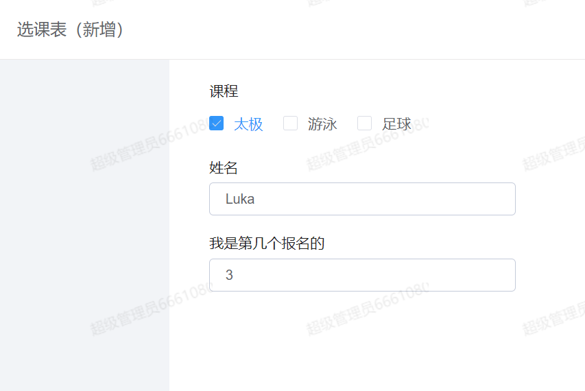 - 同理,选择了太极,就是在之前录入的课程数据里,查找值为“太极”的,并对选择太极的姓名进行计数,发现前面已经有 1 人报名,自己是第 2 个报名的。